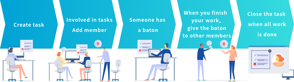 - Baton passing featureComplete your tasks while passing the baton like a relay